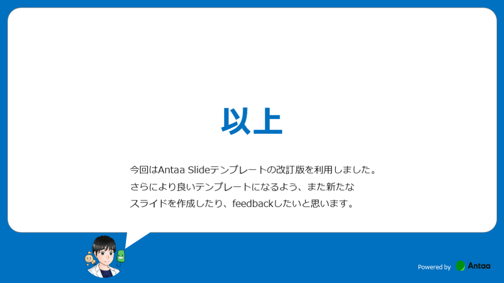 #35. 以上 今回はAntaa Slideテンプレートの改訂版を利用しました。