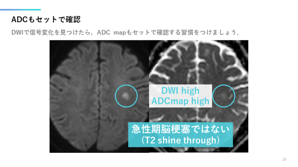 #16. ADCもセットで確認 DWIで信号変化を見つけたら,ADC mapもセットで確認する習慣をつけましょう. DWI high
