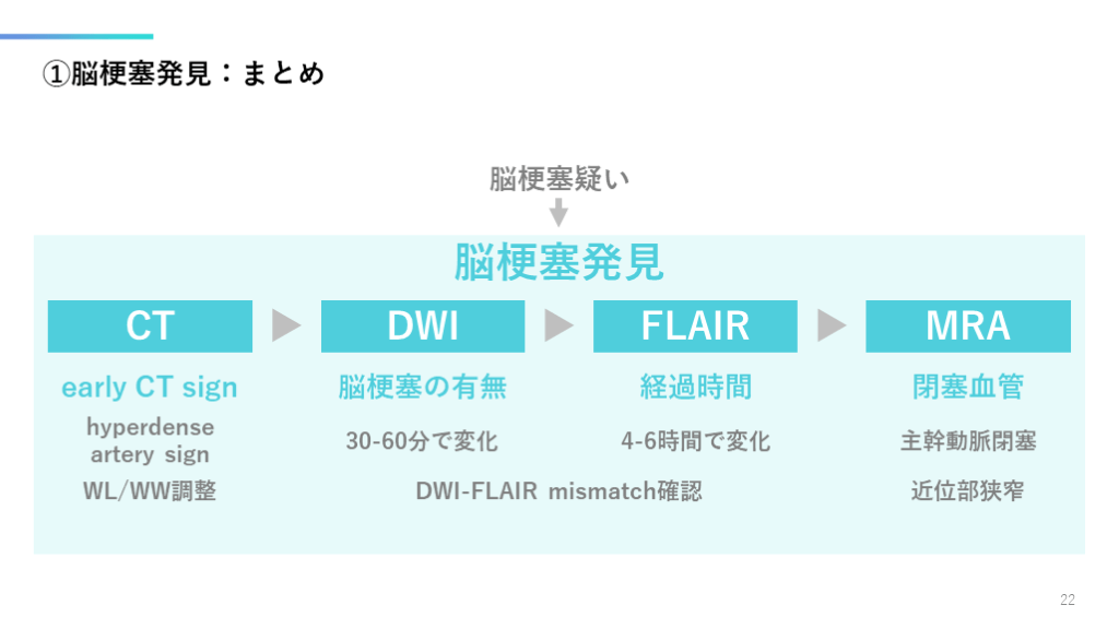 #22. ①脳梗塞発見:まとめ 脳梗塞発見 脳梗塞疑い 22