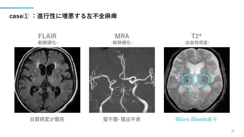 -出血性病変- 白質病変が散在 壁不整・描出不良 Micro Bleedsあり 36