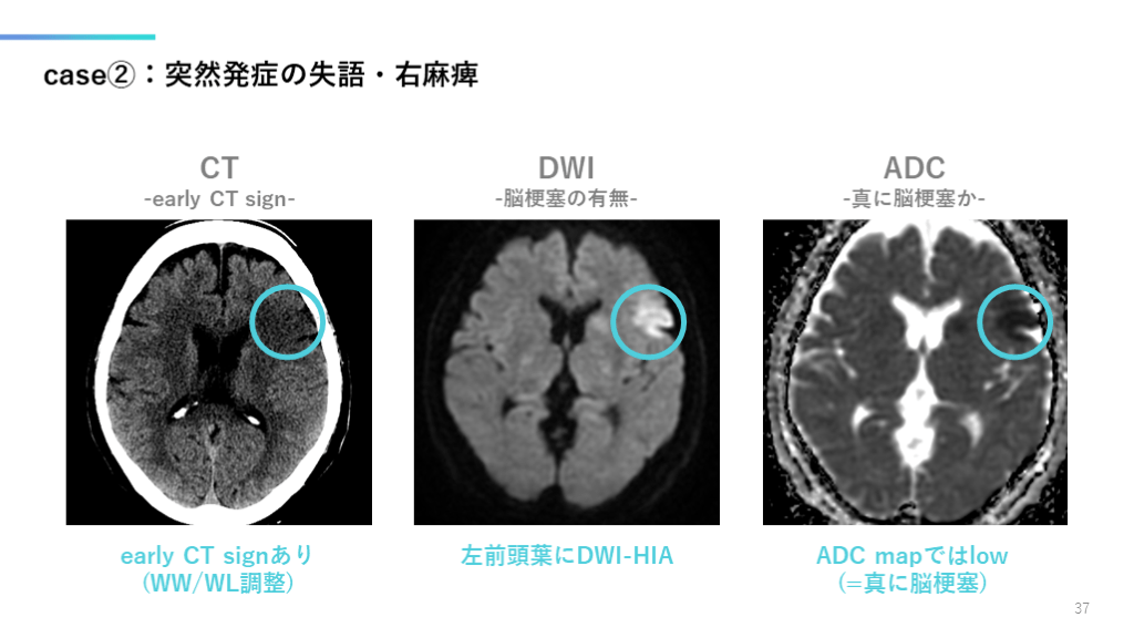 #37. case②:突然発症の失語・右麻痺 early CT signあり