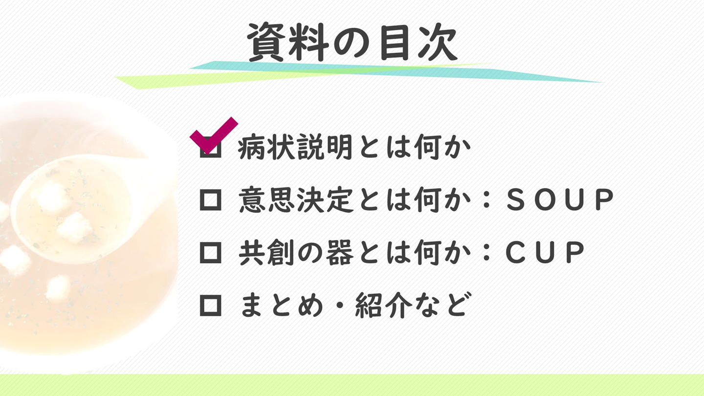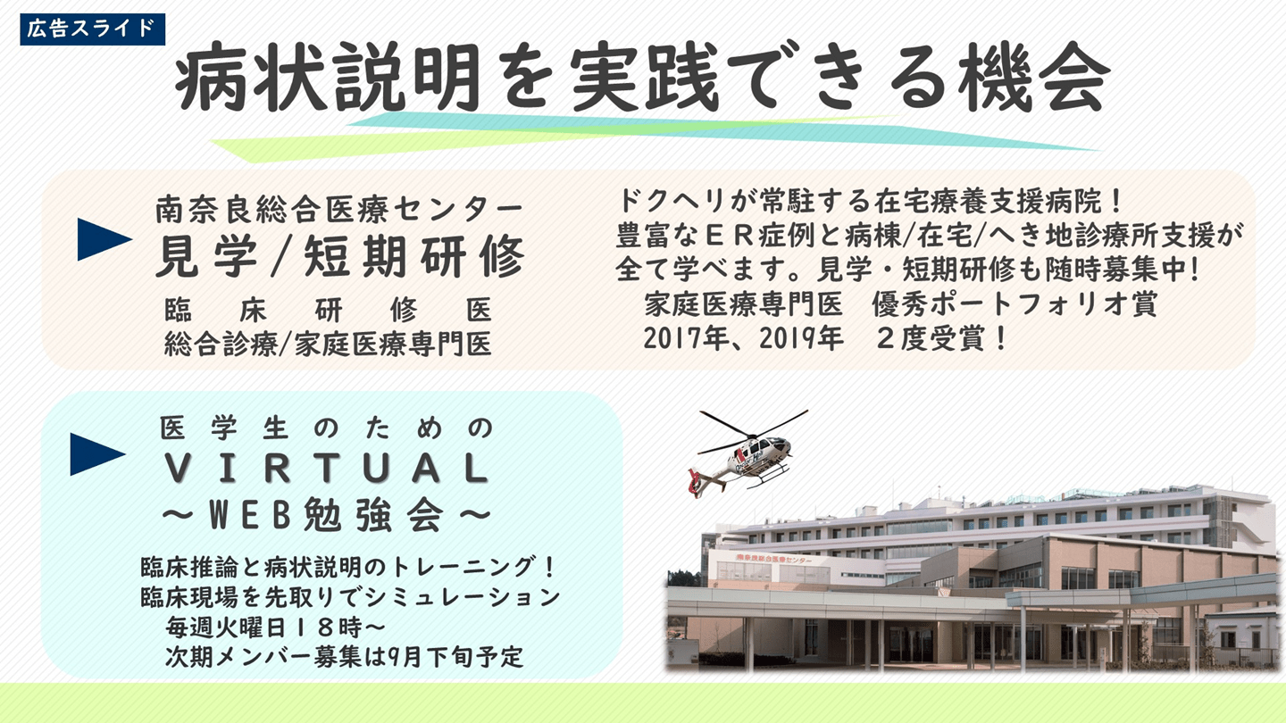 皆さんは普段、病状説明をどのように勉強していますか?先輩からは「見て盗め!」「センスだから!」と言われたかもしれません。でも実は、病状説明にも「考え方・組み立て方」があります! このスライドは、今年執筆した『病状説明 ケースで学ぶハートとスキル』のエッセンスをギュギュっとまとめた資料です。背中を見て学ぶことはもちろん大切ですが「何を見たらいいの?どう説明するの?」などよくある質問にお答えします!