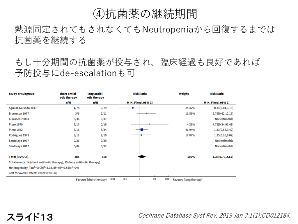 #13. ④抗菌薬の継続期間 熱源同定されてもされなくてもNeutropeniaから回復するまでは