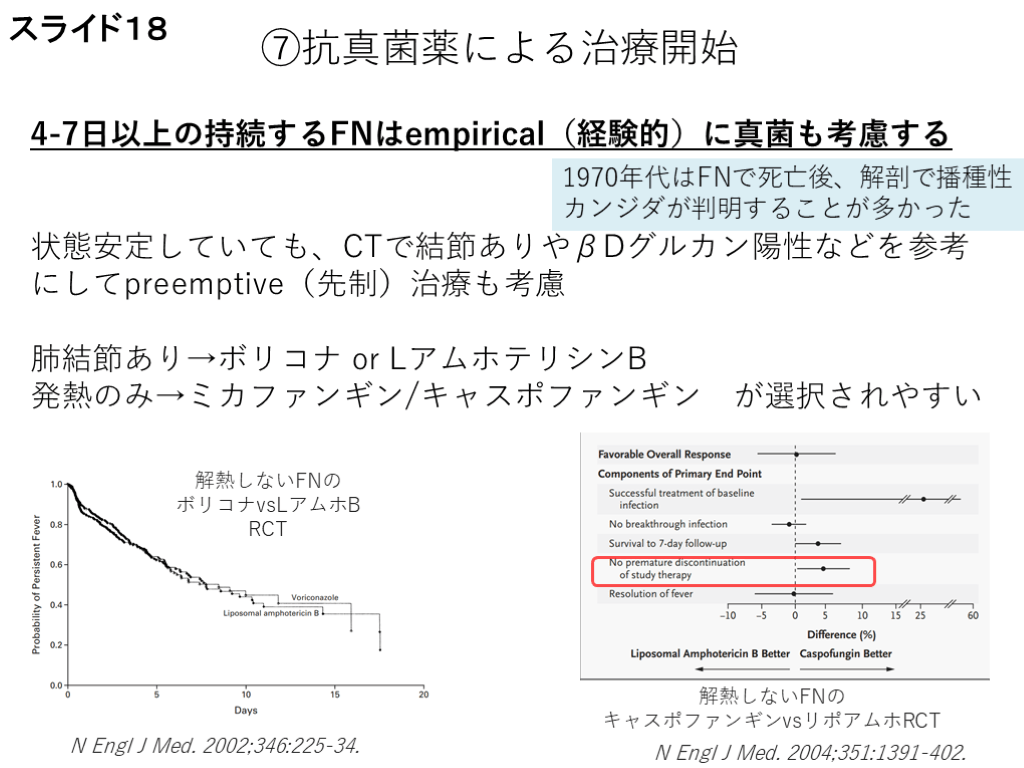 #18. ⑦抗真菌薬による治療開始 4-7日以上の持続するFNはempirical(経験的)に真菌も考慮する