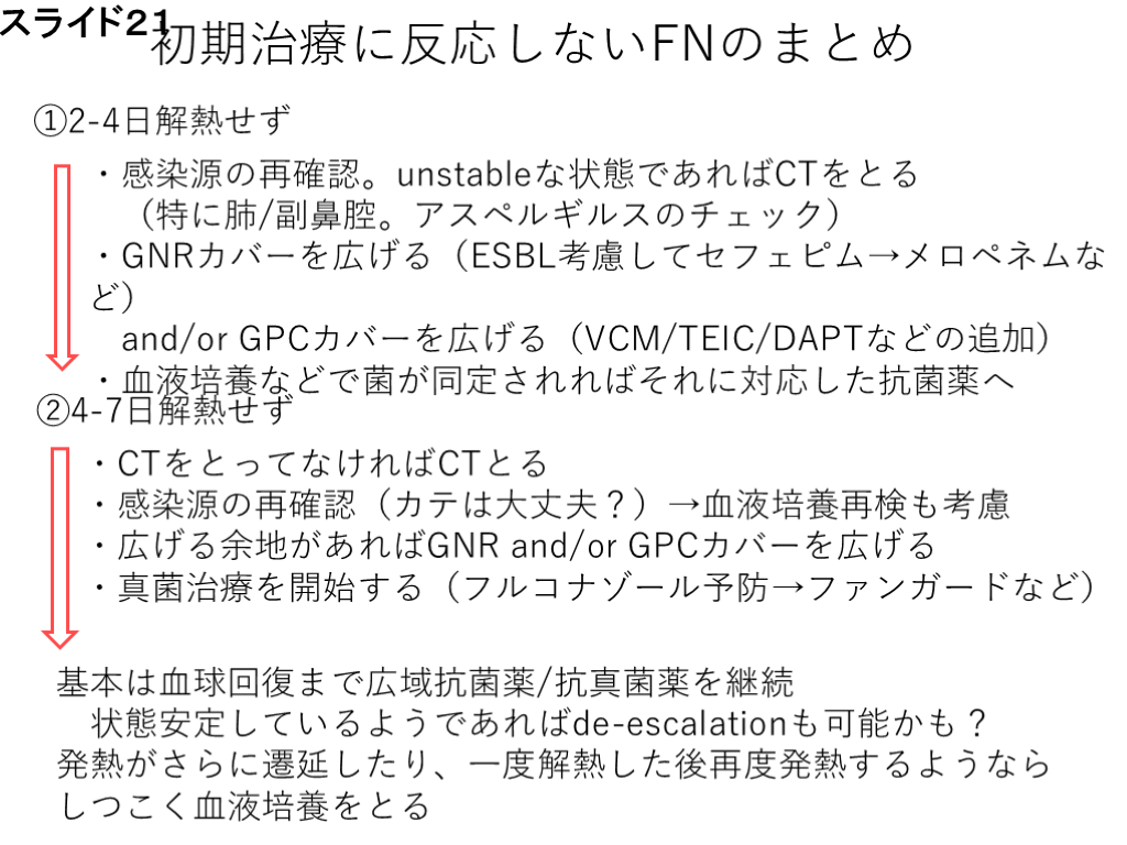 #21. 初期治療に反応しないFNのまとめ ・CTをとってなければCTとる