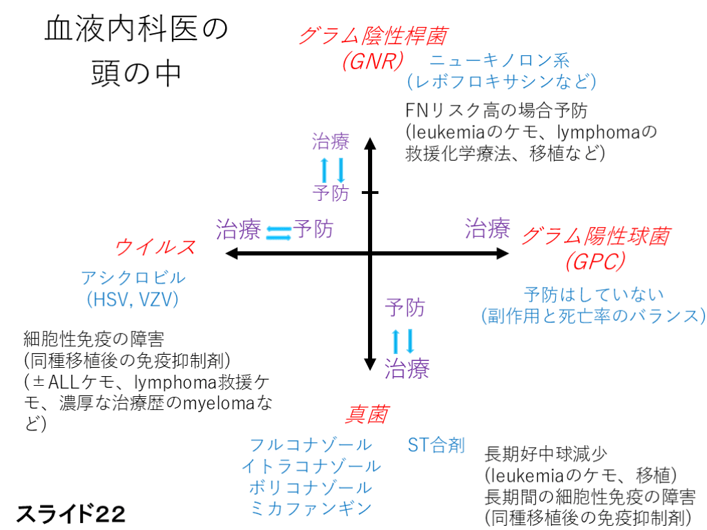 →こういったリスクのある患者では抗アスペルギルス活性のある抗真菌薬(イトリゾール,ファンガード,ボリコナゾール)による予防を考慮する 抗アスペルギルス活性