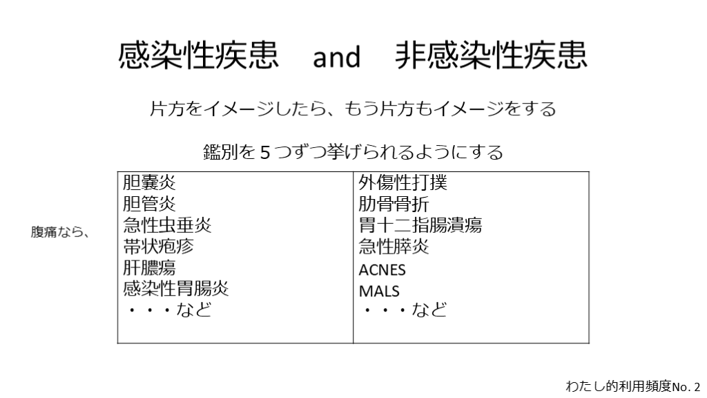鑑別を5つずつ挙げられるようにする 腹痛なら、 わたし的利用頻度No. 2