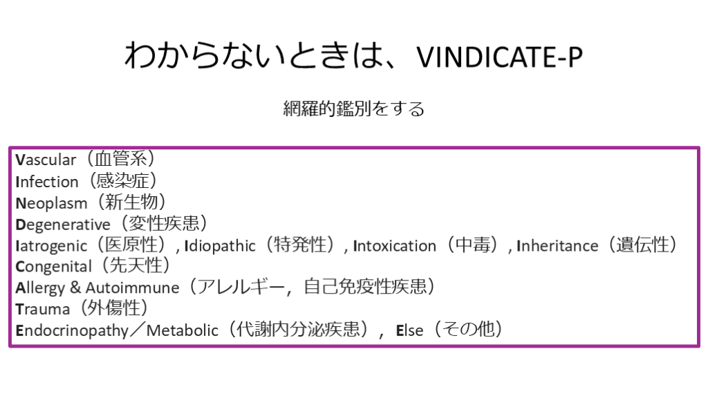 #9. わからないときは、VINDICATE-P 網羅的鑑別をする Vascular(血管系)