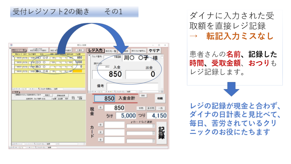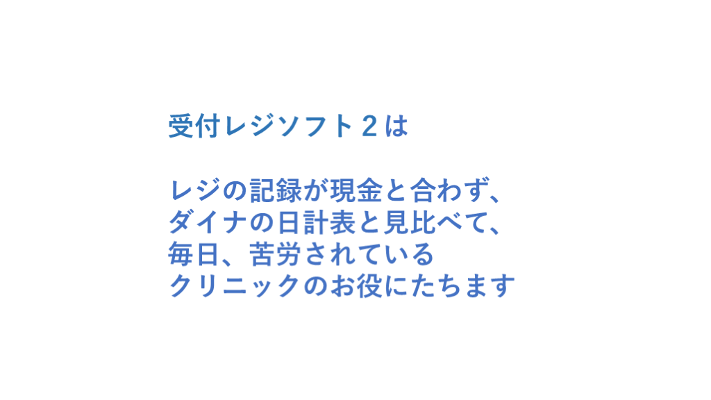 毎日、苦労されているクリニックのお役にたちます 受付レジソフト2の働き その1