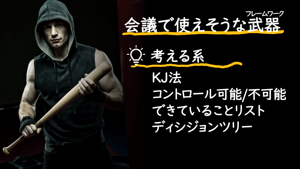 #5. フレームワーク  会議で使えそうな武器 考える系  KJ法 コントロール可能/不可能 できていることリスト ディシジョンツリー