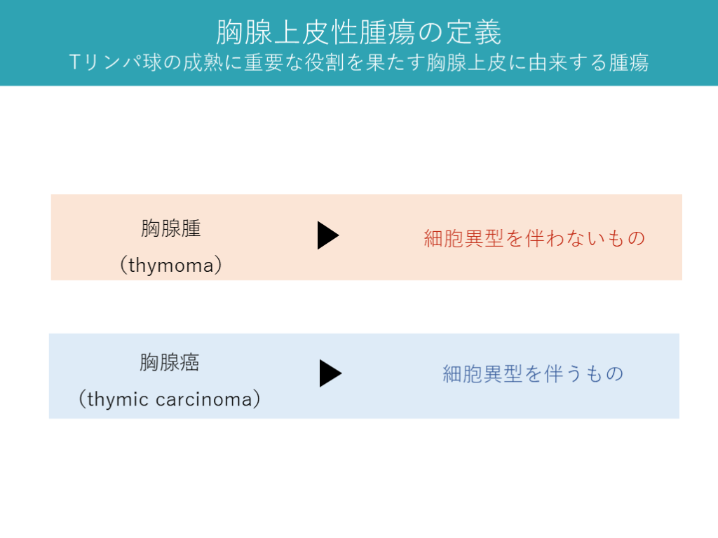 Tリンパ球の成熟に重要な役割を果たす胸腺上皮に由来する腫瘍