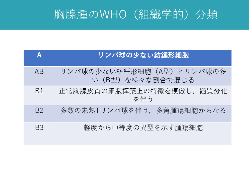 胸腺腫のWHO分類と腫瘍随伴症候群