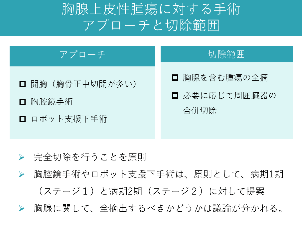 胸腺に関して、全摘出するべきかどうかは議論が分かれる。
