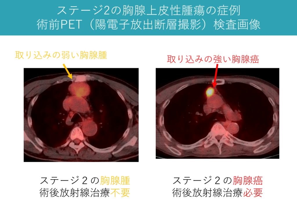 術後放射線治療必要 取り込みの強い胸腺癌 取り込みの弱い胸腺腫