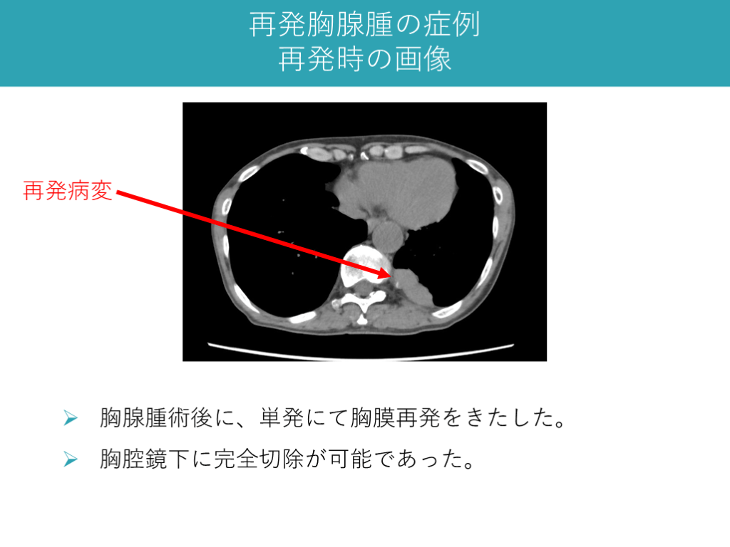 胸腔鏡下に完全切除が可能であった。 再発病変