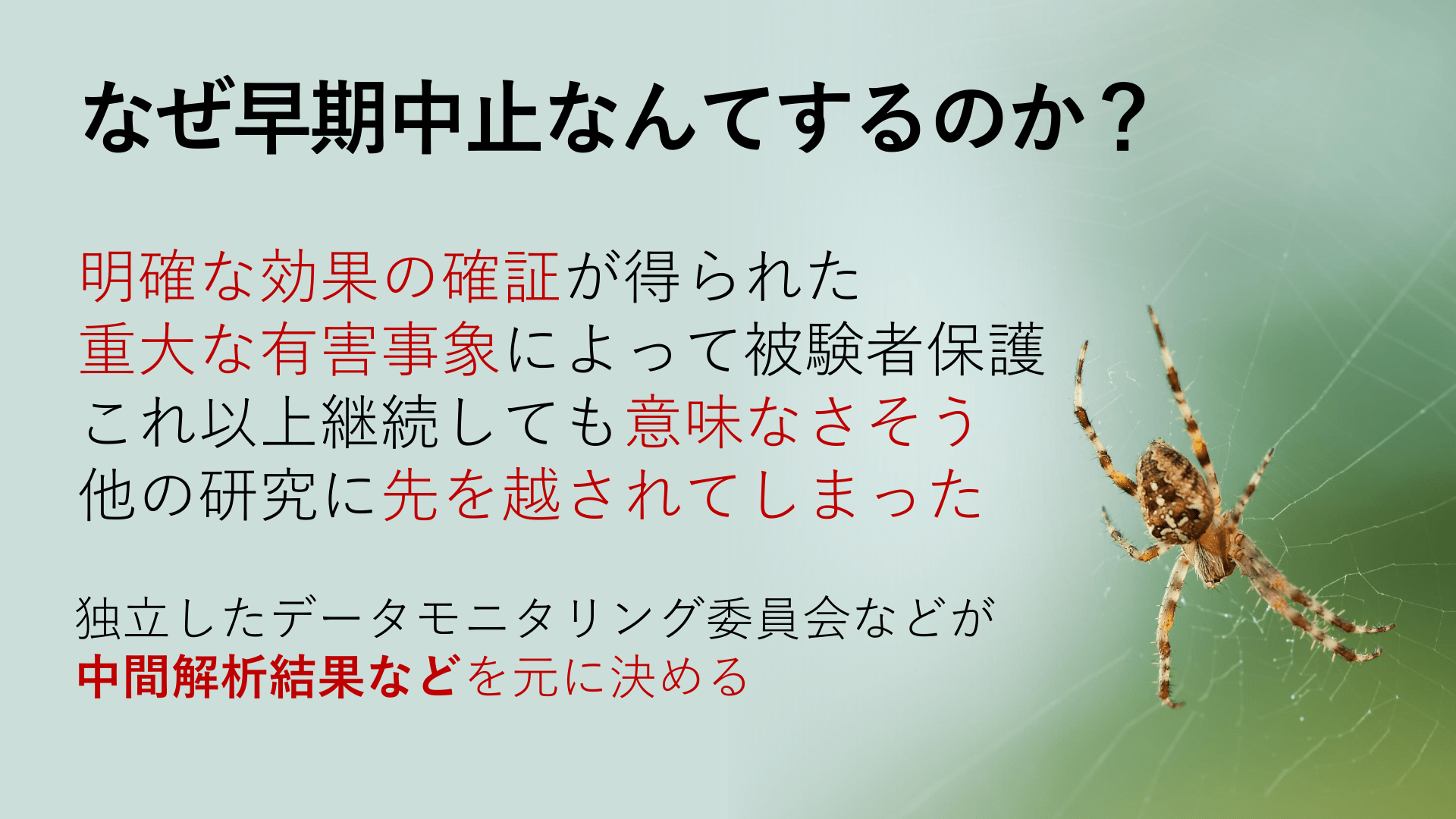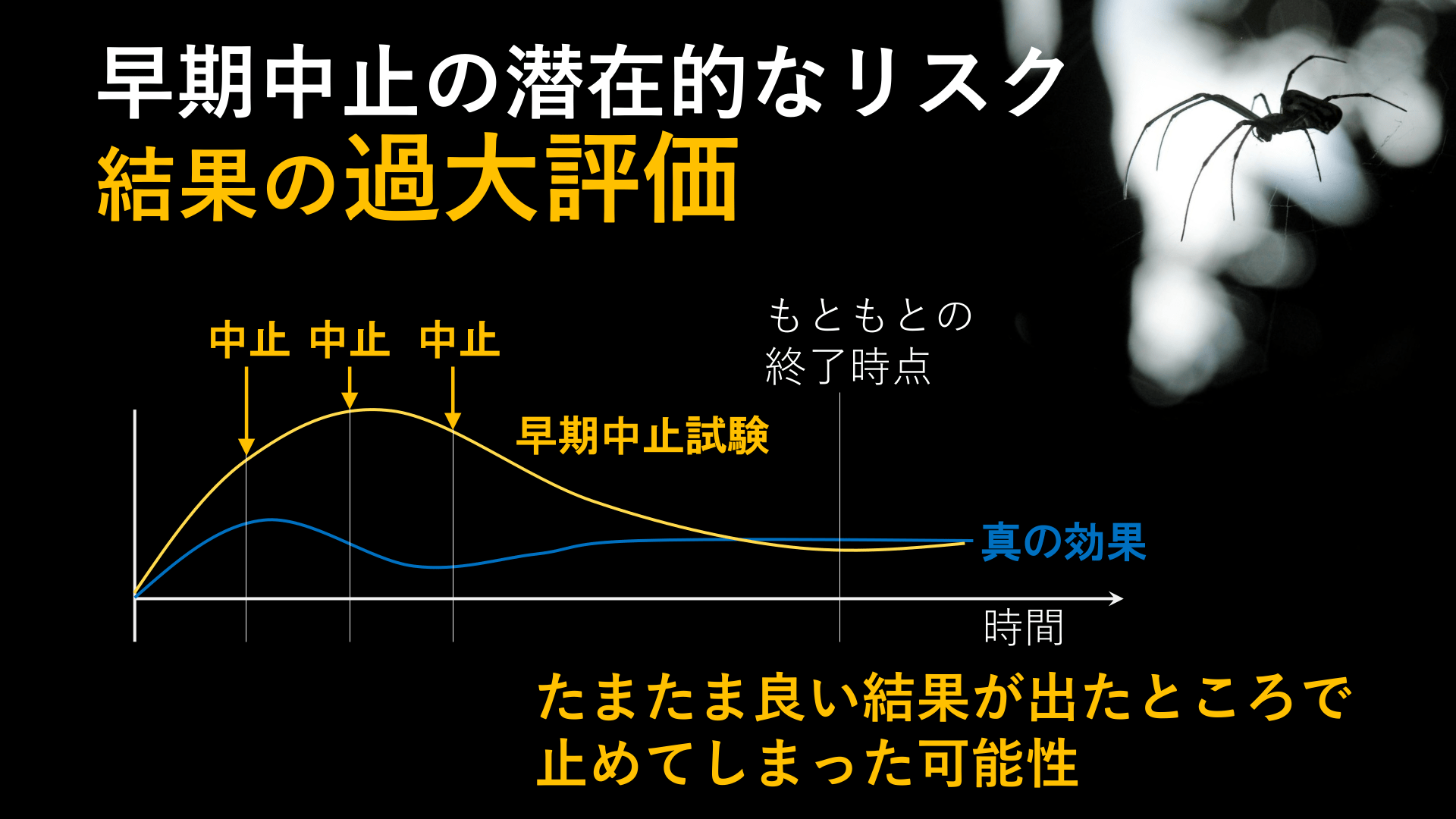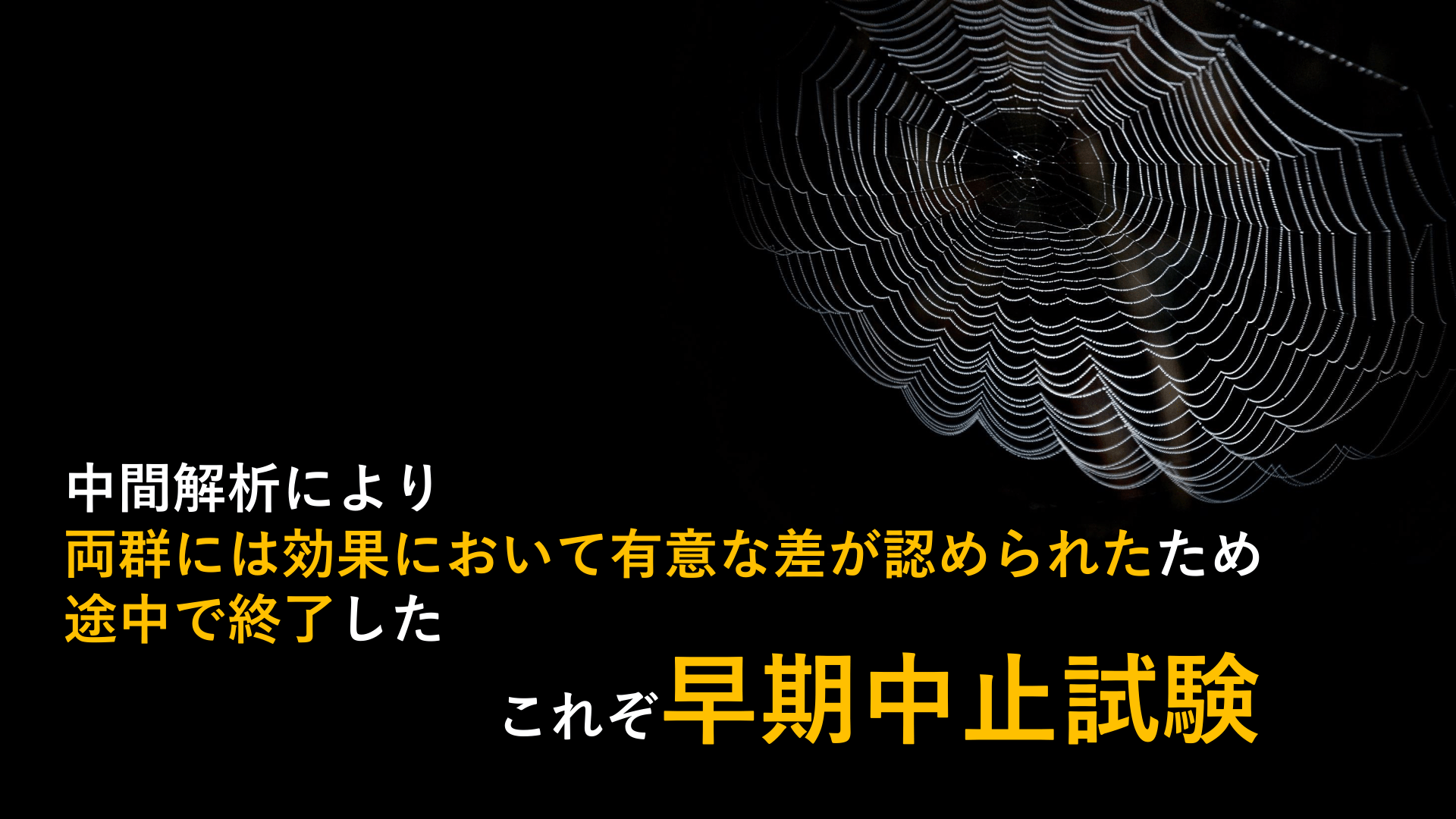 #2. 中間解析により 両群には効果において有意な差が認められたため 途中で終了した 早期中止試験 これぞ
