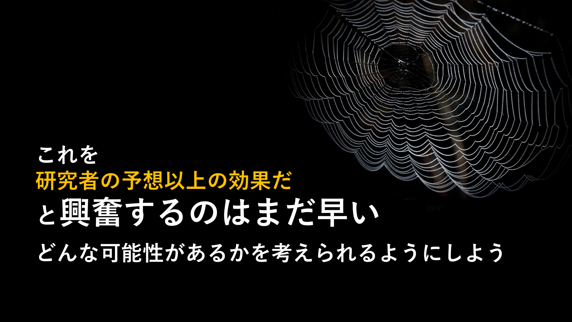 #3. これを 研究者の予想以上の効果だ と興奮するのはまだ早い どんな可能性があるかを考えられるようにしよう
