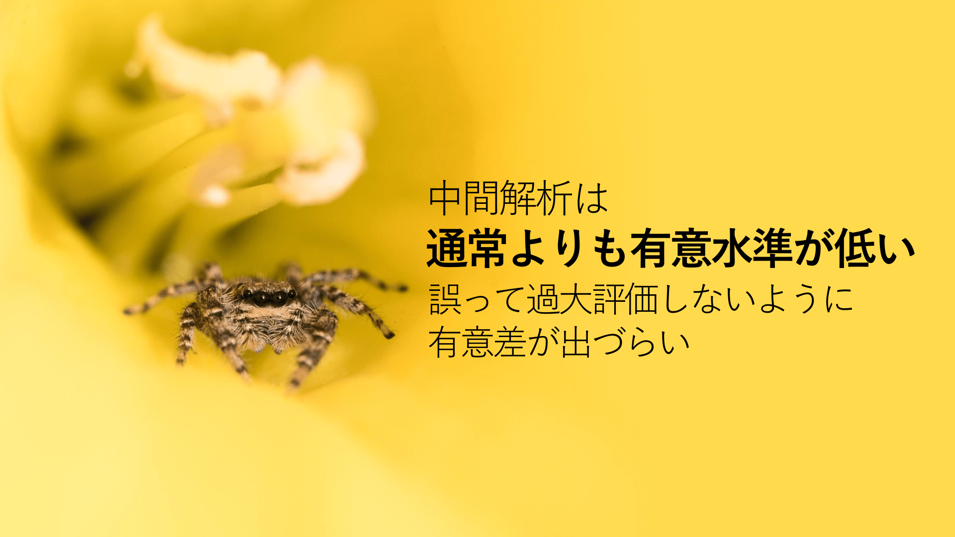 #5. 中間解析は 通常よりも有意水準が低い 誤って過大評価しないように 有意差が出づらい