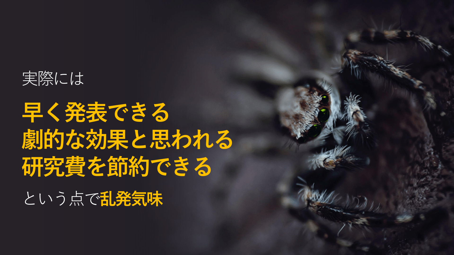 #7. 実際には 早く発表できる 劇的な効果と思われる 研究費を節約できる という点で乱発気味