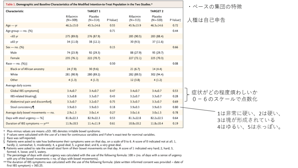 ・腹痛および腹部膨満感の1日の平均量をリッカートスコアリングシステム(0全くない~6とても強い)で2-4.5/7、便の性状(1非常に硬い,2硬い,3塊状,4緩い,5水様)の3.5以上のIBS患者。