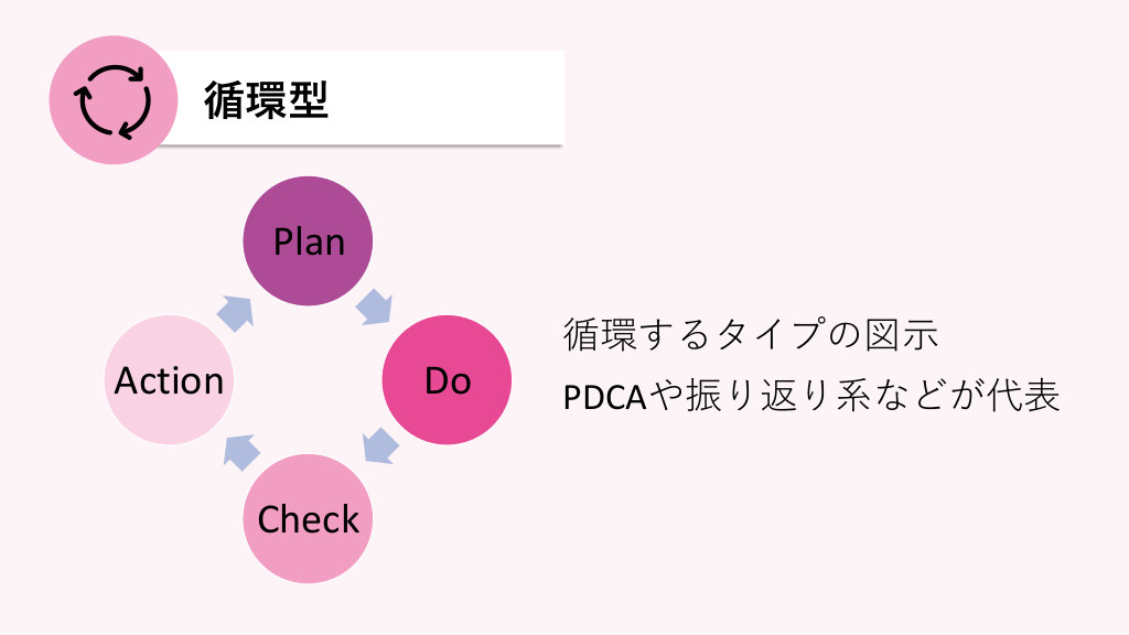 #4. 循環型 Plan 循環するタイプの図示 Action Do Check PDCAや振り返り系などが代表