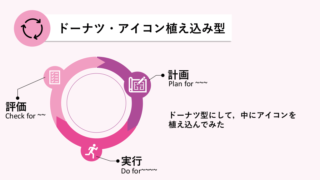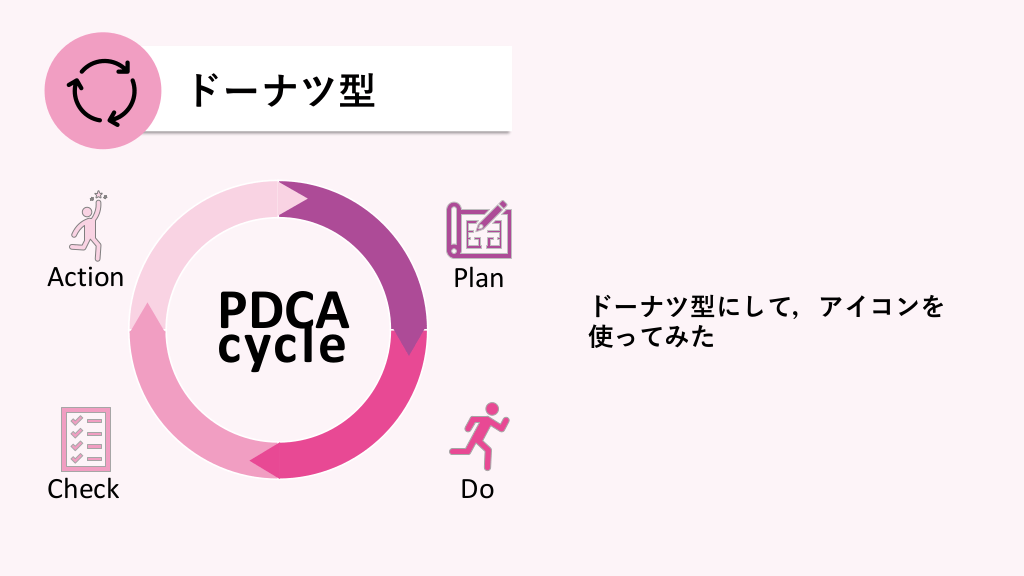 #6. ドーナツ型 Action Check PDCA cycle Plan Do ドーナツ型にして,アイコンを 使ってみた
