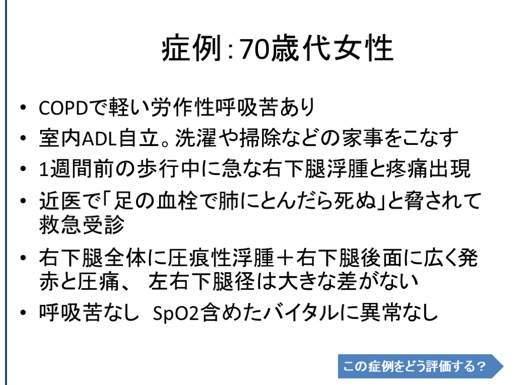 近医で「足の血栓で肺にとんだら死ぬ」と脅されて救急受診