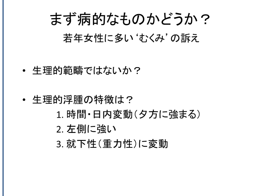#3. まず病的なものかどうか?若年女性に多い‘むくみ’の訴え 生理的範疇ではないか?