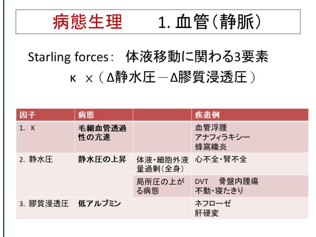 #5. 病態生理 1. 血管(静脈) Starling forces: 体液移動に関わる3要素