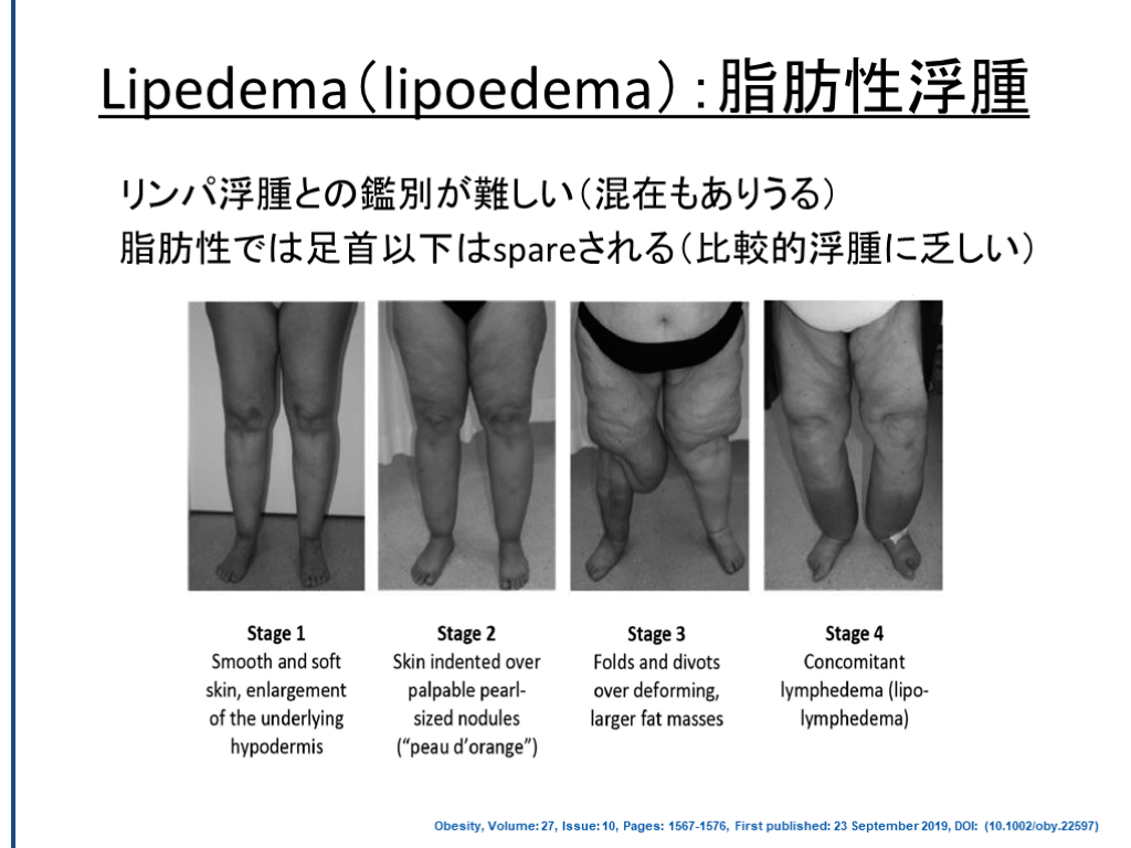 脂肪性では足首以下はspareされる(比較的浮腫に乏しい)