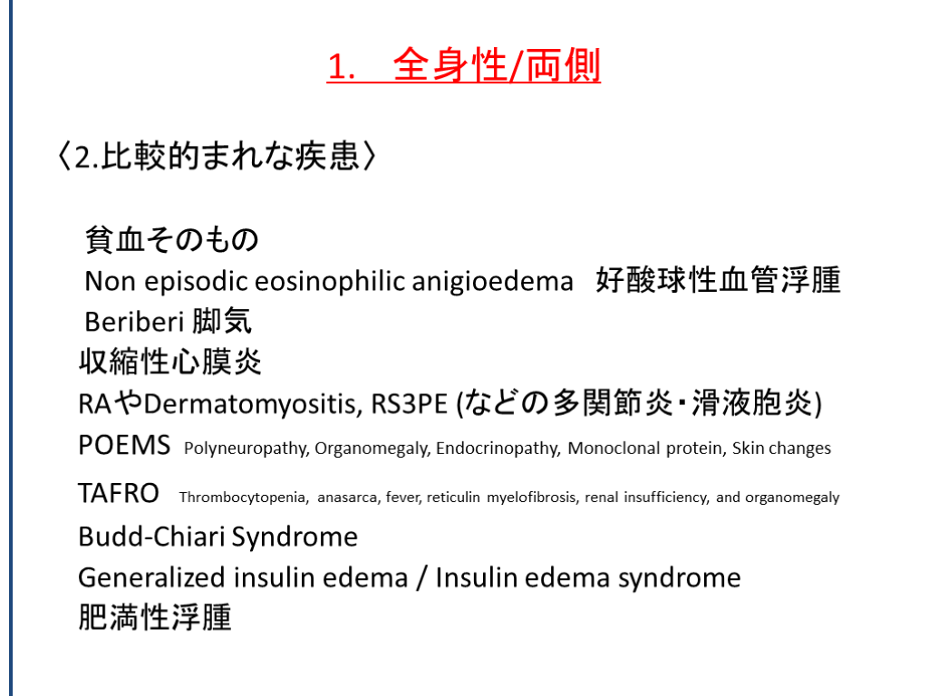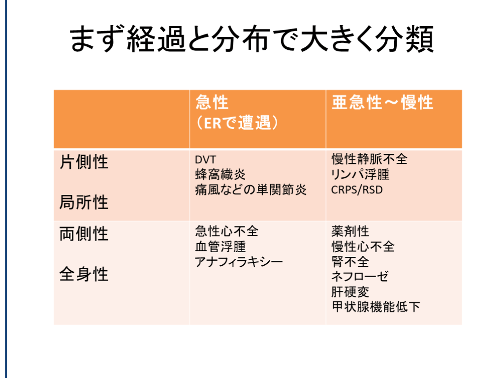 これらの病態で主訴が浮腫(だけ)というのは少ない
