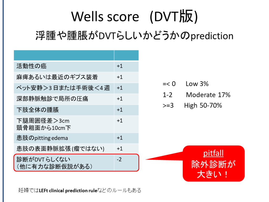 腓腹部にpitting edema, 軽い発赤・熱感と圧痛