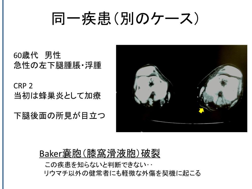 下腿後面の所見が目立つ Baker嚢胞(膝窩滑液胞)破裂