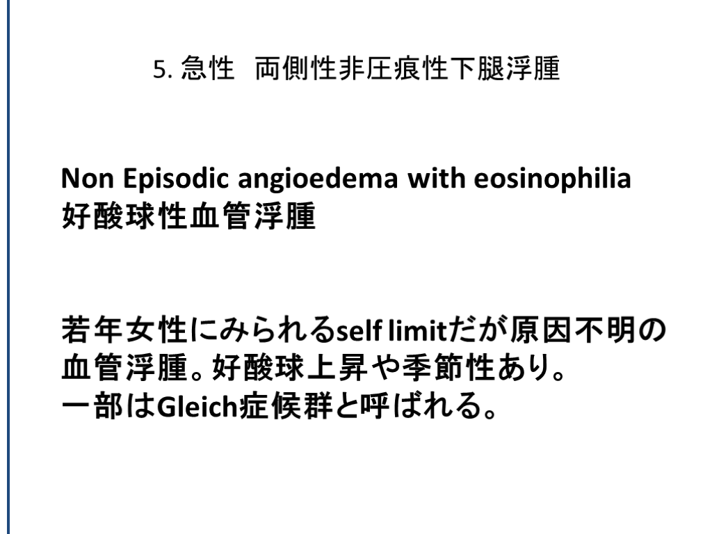#36. 5. 急性 両側性非圧痕性下腿浮腫 Non Episodic angioedema with eosinophilia