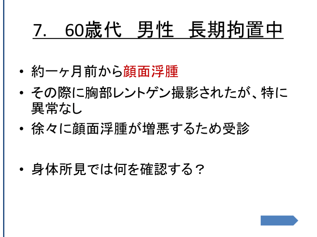 #39. 7. 60歳代 男性 長期拘置中 約一ヶ月前から顔面浮腫