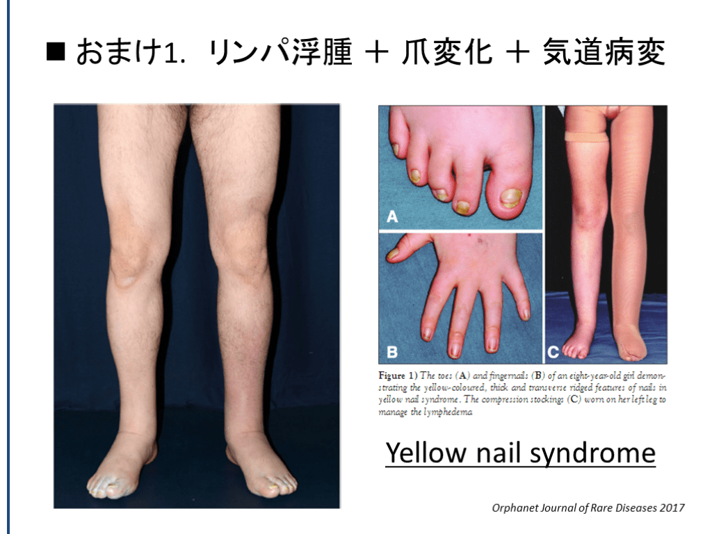 #44. おまけ1. リンパ浮腫 + 爪変化 + 気道病変 Yellow nail syndrome Orphanet Journal of Rare Diseases 2017