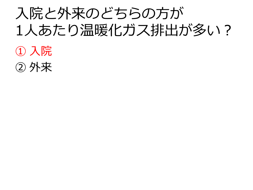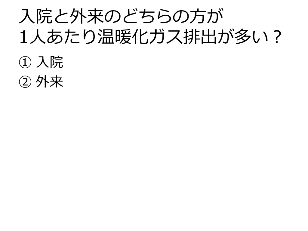 #41. ⼊院と外来のどちらの⽅が 1⼈あたり温暖化ガス排出が多い︖ ① ⼊院 ② 外来