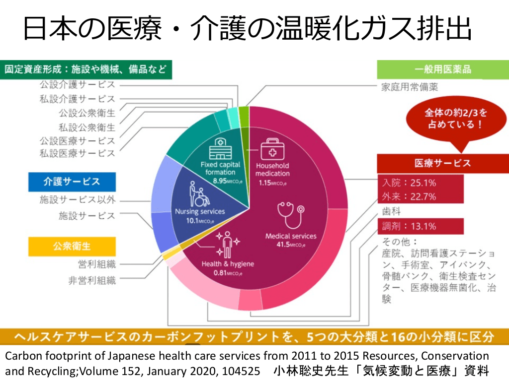 #40. ⽇本の医療・介護の温暖化ガス排出 Carbon footprint of Japanese health care services from 2011 to 2015 Resources, Conservation and Recycling;Volume 152, January 2020, 104525 小林聡史先生「気候変動と医療」資料