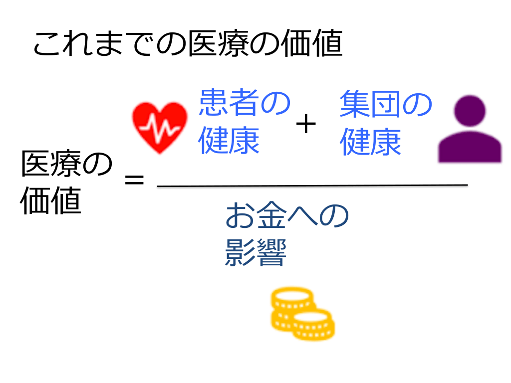 #43. これまでの医療の価値 医療の = 価値 患者の 集団の + 健康 健康 お⾦への 影響