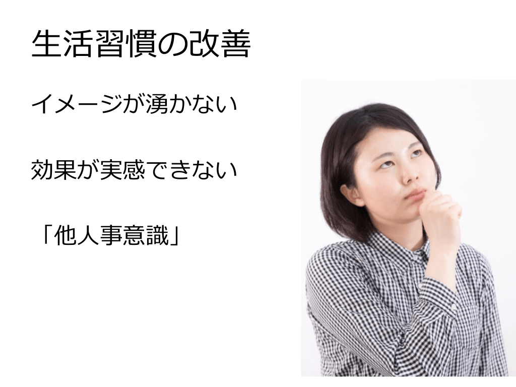 #52. ⽣活習慣の改善 イメージが湧かない 効果が実感できない 「他⼈事意識」