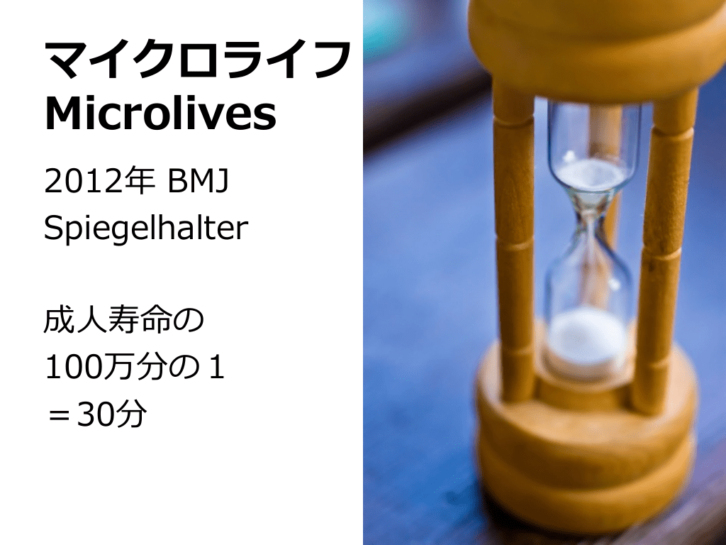 #53. マイクロライフ Microlives 2012年 BMJ Spiegelhalter 成⼈寿命の 100万分の1 =30分
