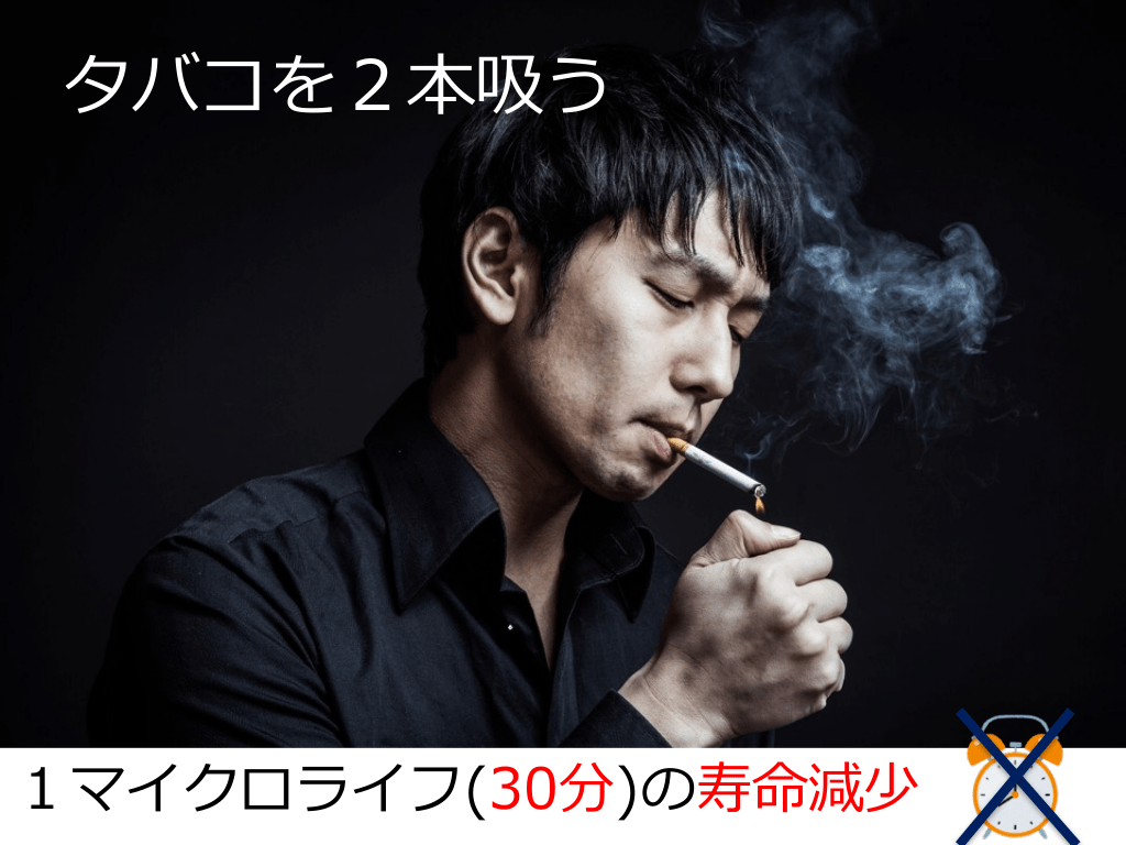 #54. タバコを1箱吸う タバコを2本吸う 1マイクロライフ(30分)の寿命減少