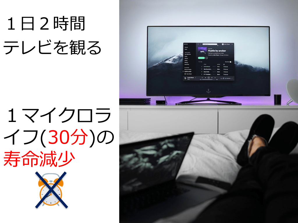 #56. 1⽇2時間 テレビを観る 1マイクロラ イフ(30分)の 寿命減少