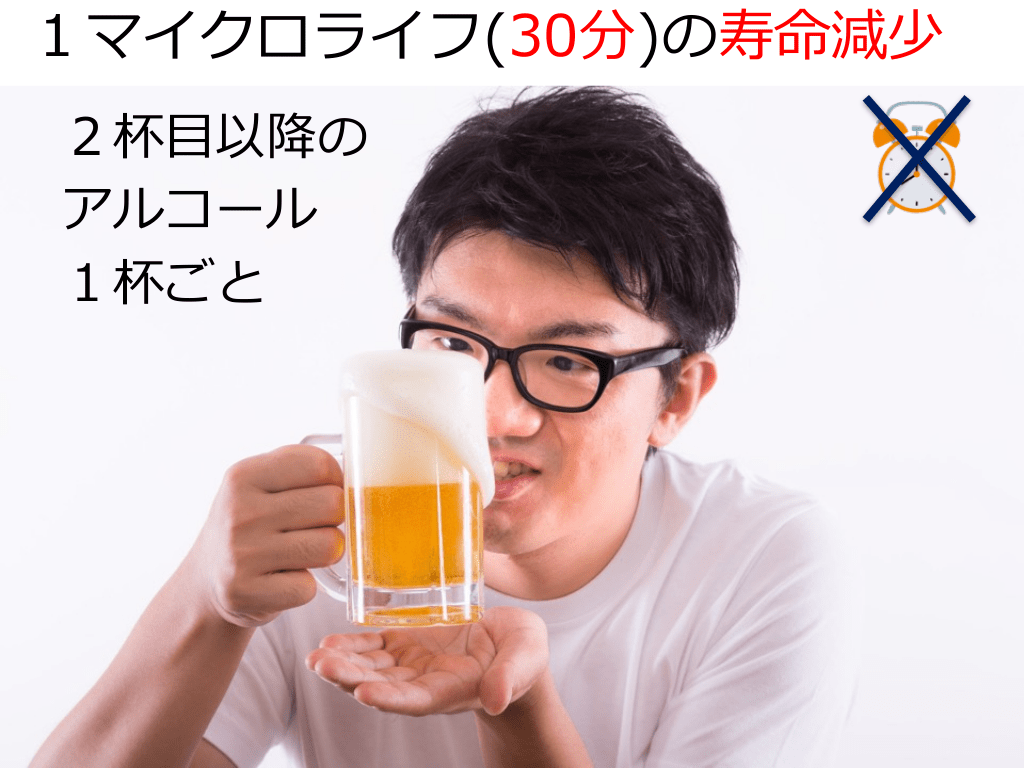 #57. 1マイクロライフ(30分)の寿命減少 2杯⽬以降の アルコール 1杯ごと