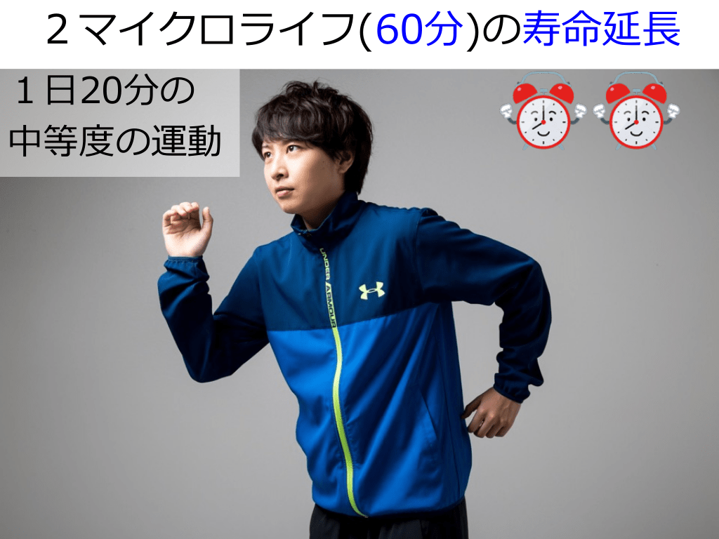 #58. 2マイクロライフ(60分)の寿命延⻑ 1⽇20分の 中等度の運動