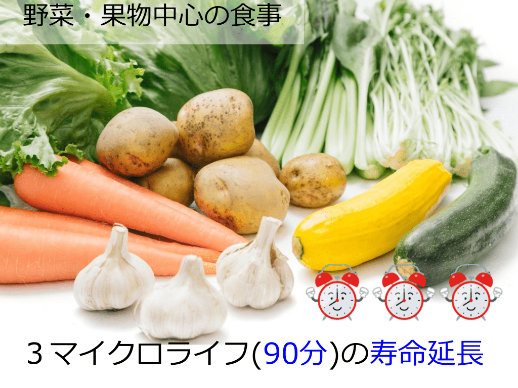 #59. 野菜・果物中⼼の⾷事 3マイクロライフ(90分)の寿命延⻑