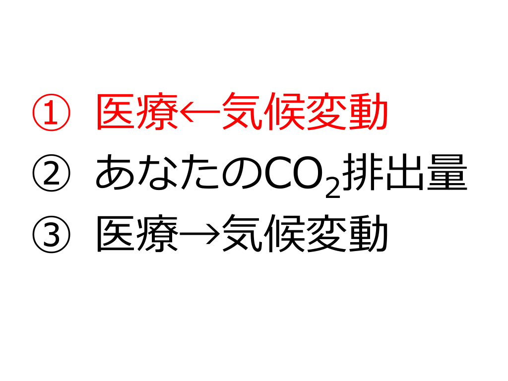 #8. ① 医療←気候変動 ② あなたのCO2排出量 ③ 医療→気候変動