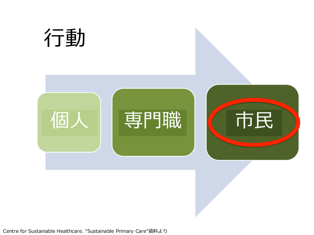 #84. ⾏動 個⼈ 専⾨職 Centre for Sustainable Healthcare. “Sustainable Primary Care”資料より 市⺠