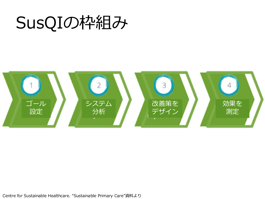 #89. SusQIの枠組み ゴール 設定 システム 分析 Centre for Sustainable Healthcare. “Sustainable Primary Care”資料より 改善策を デザイン 効果を 測定