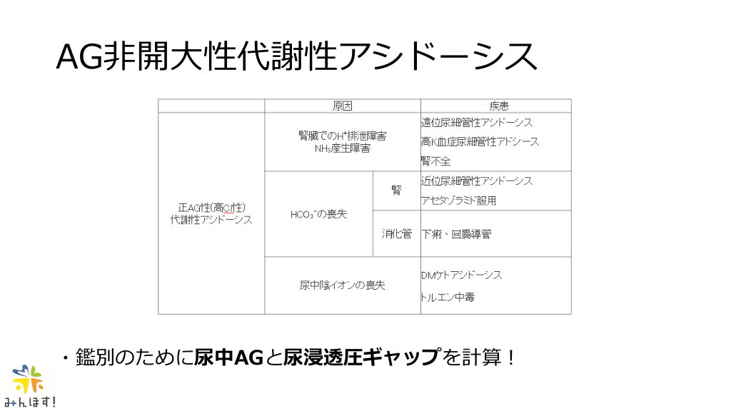 #100. AG非開大性代謝性アシドーシス ・鑑別のために尿中AGと尿浸透圧ギャップを計算!